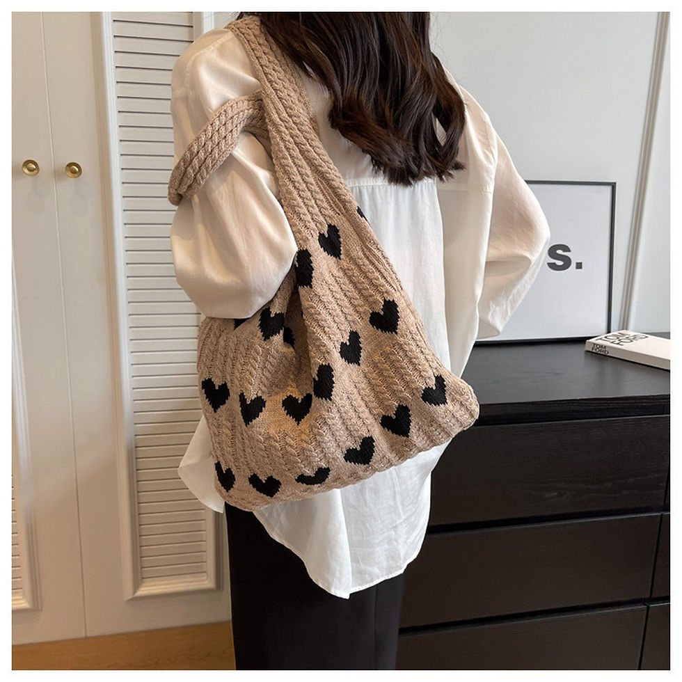 Heart Pattern Knitted Large Capacity Tote Bag
